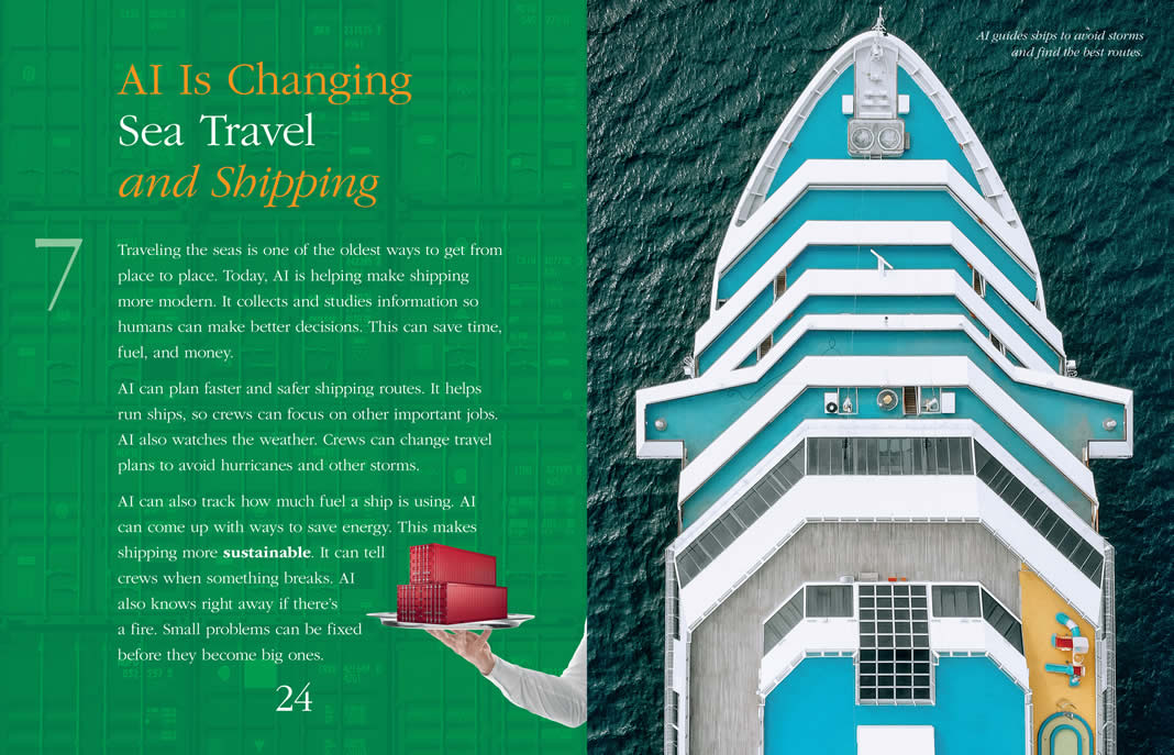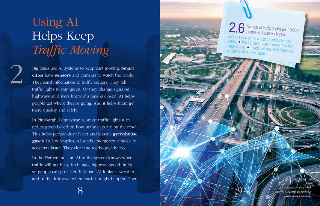 The future of transportation is here! Dive into the fascinating world of AI and discover how it’s revolutionizing the way we move in this middle school STEM book. From self-driving cars to smart traffic systems, striving readers will gain insights into AI’s role in transportation. Each fast-paced, fact-filled chapter showcases today’s technological advancements to inspire and amaze readers. Featuring highly accessible layouts and self-contained chapters, this hi-lo book captures middle-grade content at a 4th-grade reading level. Includes stat boxes, captions, a table of contents, glossary, index, and extra book and website resources.